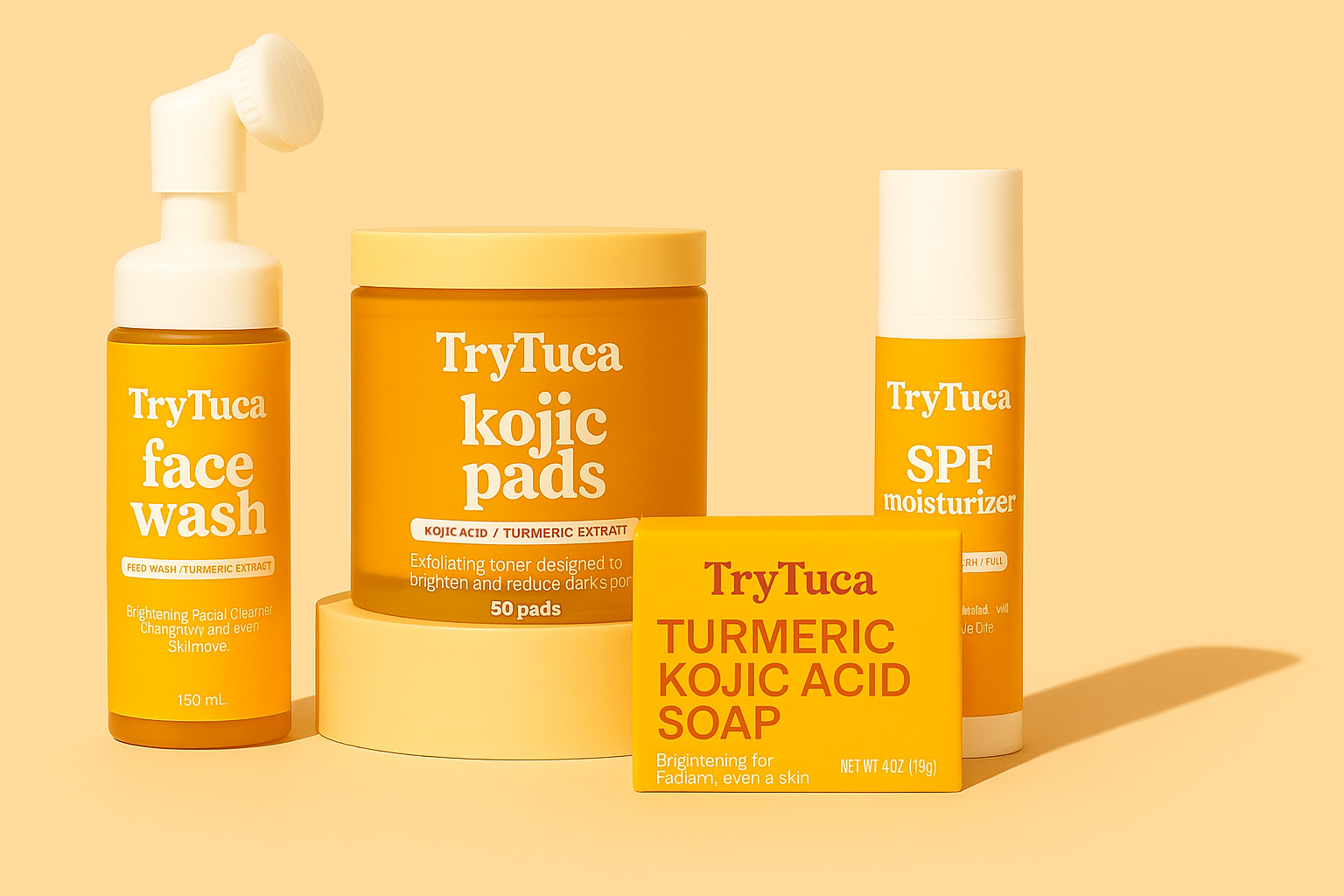TryTuca combineert kurkuma, kojiczuur en citroen, een gouden trio dat de huid op milde wijze verheldert, verzacht en egaliseert. Geen chemicaliën, geen agressieve blekers, alleen pure actieve ingrediënten die echt werken.